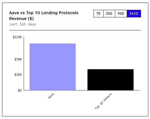 Aave generated roughly 2x more revenue over the past year than the other top 10 lending protocols combined