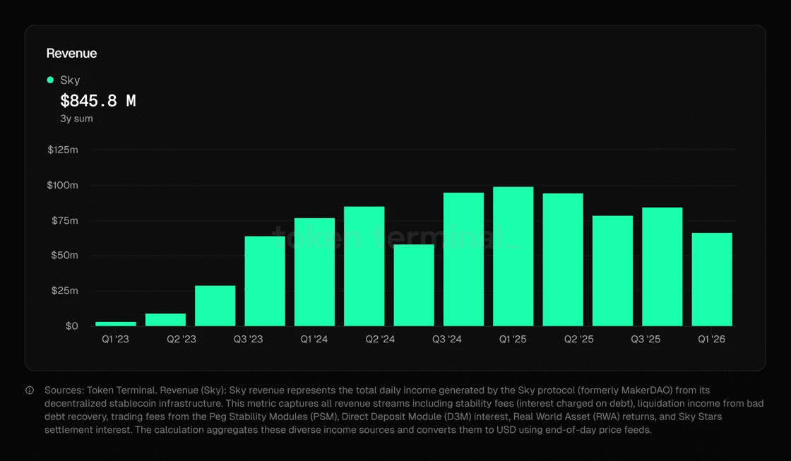 Sky (formerly MakerDAO) generated approximately $340MM in revenue in 2025, positioning the DAO among the highest-earning protocols in crypto