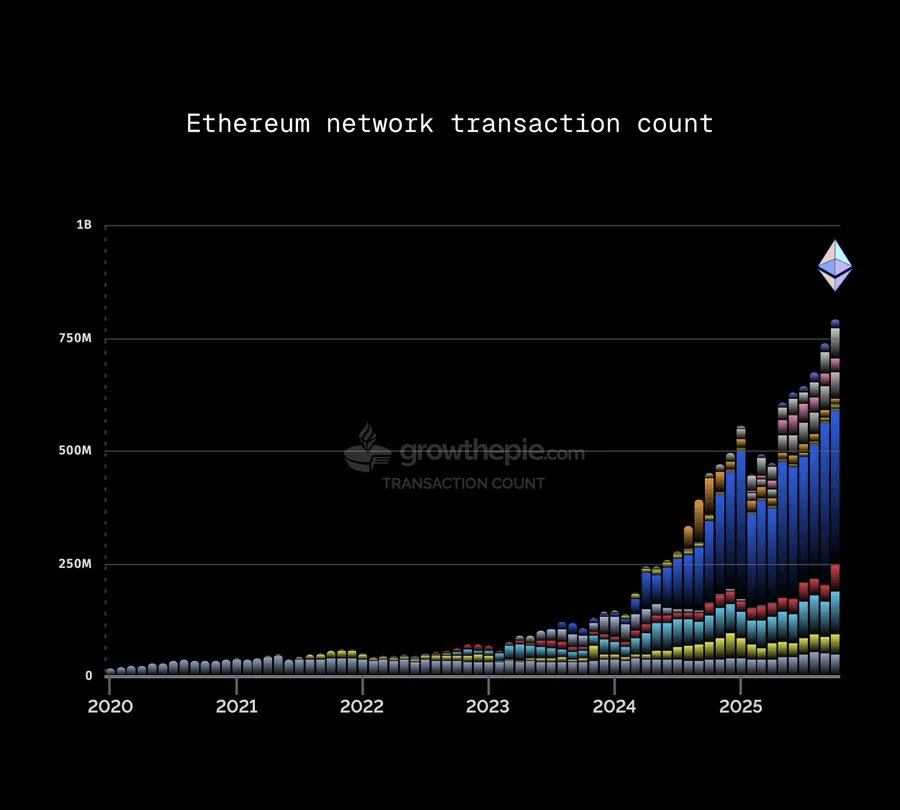 Ethereum continues to break transaction records, with total network activity reaching new highs as Layer 2 scaling drives sustained growth in throughput