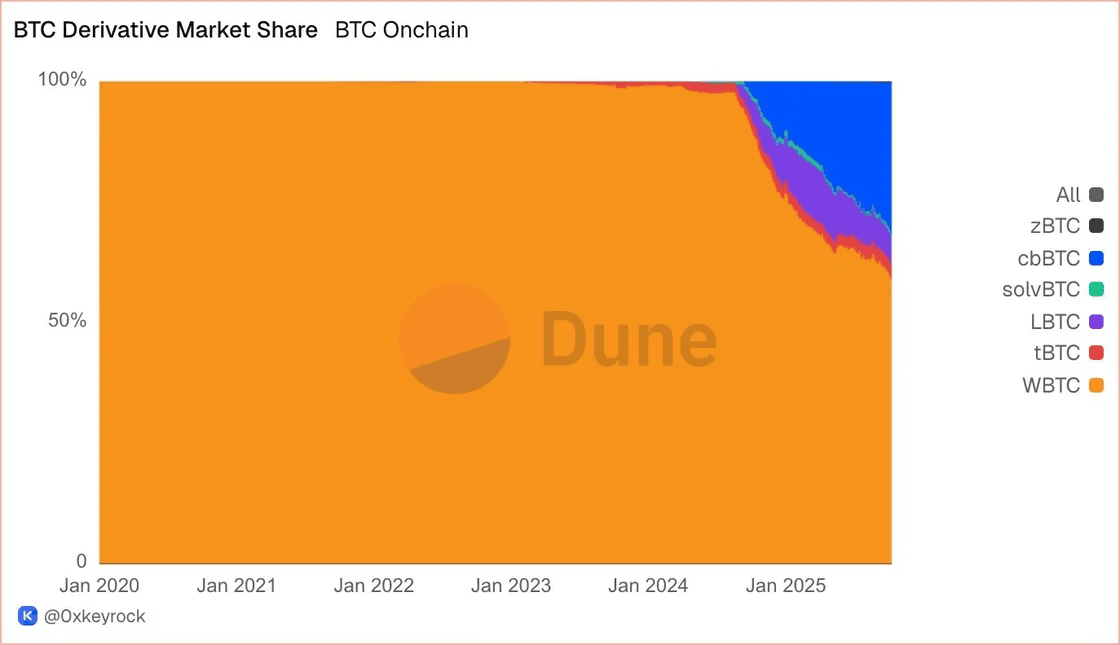 Coinbase’s cbBTC now represents roughly 32% of BTC in DeFi, eroding WBTC’s dominance and signaling the market’s growing demand for alternative Bitcoin wrappers