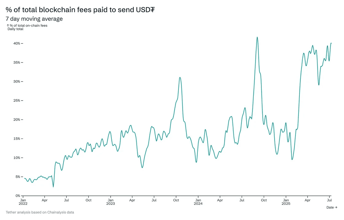 40% of all blockchain fees are paid to send USDT across nine chains.